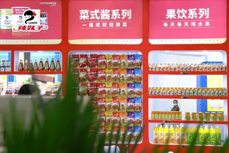 “紫蘇砂鍋牛蛙,老長沙德字香干,口味魷魚須,蒜蓉小龍蝦”等湘式特色菜在展臺前整齊陳列,來往的人群聞香止步,排隊品嘗,并對辣妹子產(chǎn)品贊不絕口?!袄泵米訌?fù)合調(diào)味醬產(chǎn)品出餐標準化,口味濃郁,搭配豐富,可塑性強,”、“產(chǎn)品如此深耕細作,真正體現(xiàn)大企業(yè)的實力!”渠道供應(yīng)商們?nèi)缡钦f。